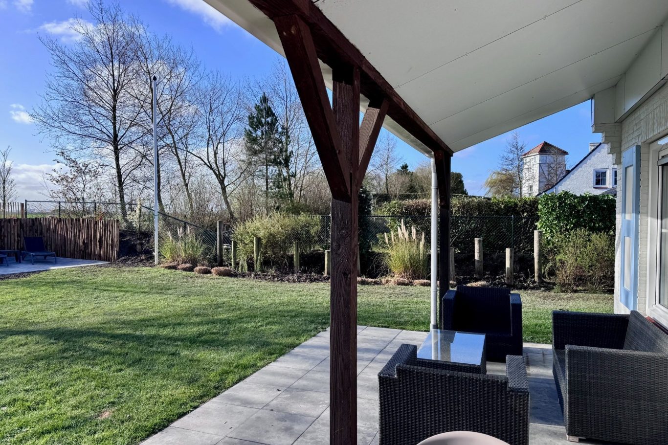 De grote tuin biedt volop ruimte om te spelen en te ontspannen en ligt aan de rand van het park, wat zorgt voor extra privacy. Vanuit de tuin heeft u een weids uitzicht over het Zeeuws-Vlaamse polderlandschap. De combinatie van rust, ruimte en comfort maakt Villa Duingras 7 een ideale vakantiebestemming aan de Zeeuwse kust.