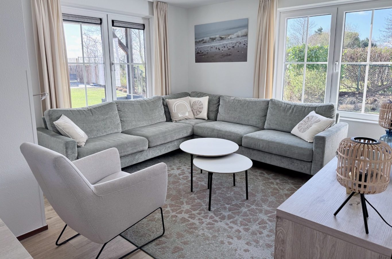 Sfeervolle vakantiewoning voor 6 personen met lichte, strandgerichte inrichting. Comfortabele meubels en een gezellige eet- en zithoek om samen te ontspannen. Ideaal gelegen nabij strand en faciliteiten voor een zorgeloos verblijf.
